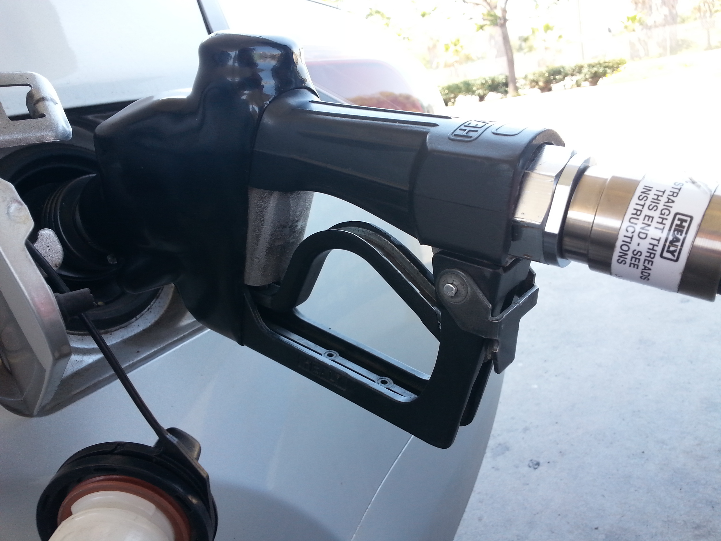 The first, known as 'fast pumping' (as my mexican friend informs me) is the traditional when you pull the lever all the way to the top, lock the clip in and it dispenses until you reach the desired amount. Here it pumps gas faster, but you actually get less gas as it forces much more air in during the process.