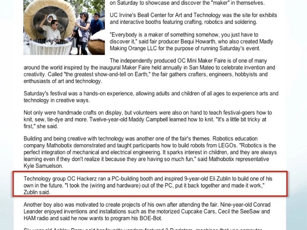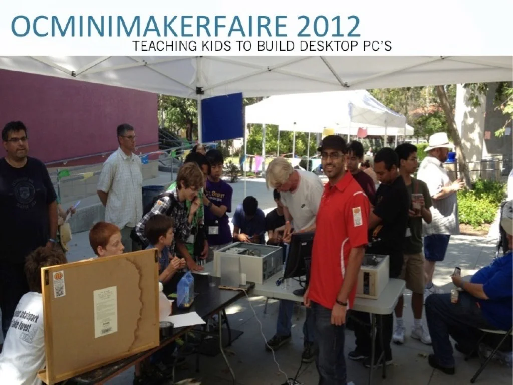 At our first Makerfaire, we held a 'hands-on' timed competition for boys and girls to build a computer at our booth. It was an opportunity for them to get comfortable understanding the components used and learning about the history of computing.